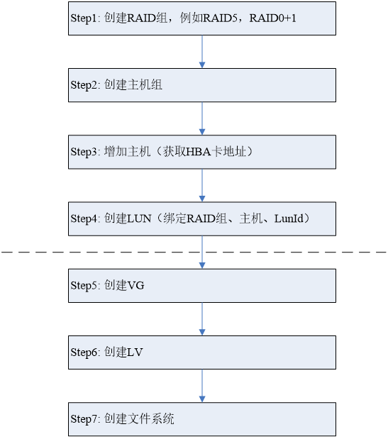 其中Step1-Step4是在磁盘阵列上完成的,Step5-Step8需要在主机或虚拟机上完成。