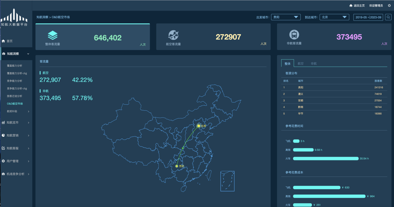 旅客从哪里来,到哪里去。形成行程前、行程中、行程后各个环节的全方位分析。